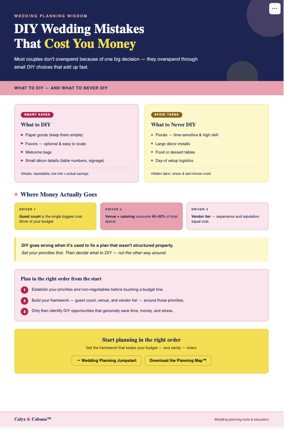 Real talk: DIY won't fix a budget that was never structured right. The Wedding Planning Jumpstart sorts that out first. → Get it here.
