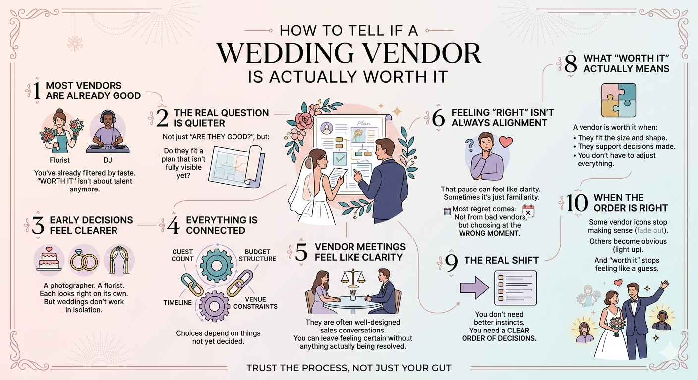 A vendor is usually worth it when they make sense inside the reality of your wedding — not just in isolation.